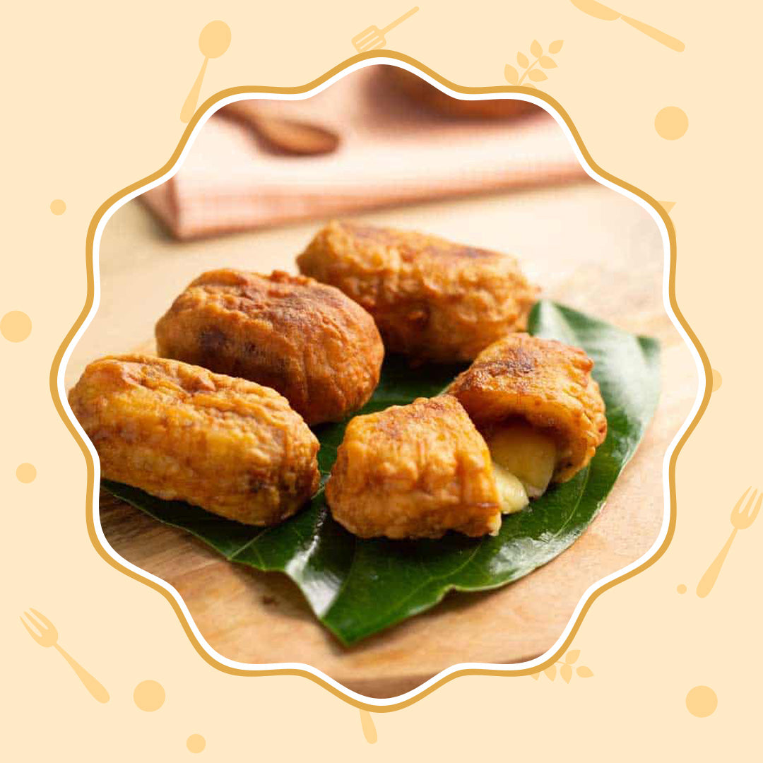 Plátano maduro relleno de queso derretido, el equilibrio perfecto entre dulce y salado, ¡una alegría que se derrite en cada bocado!